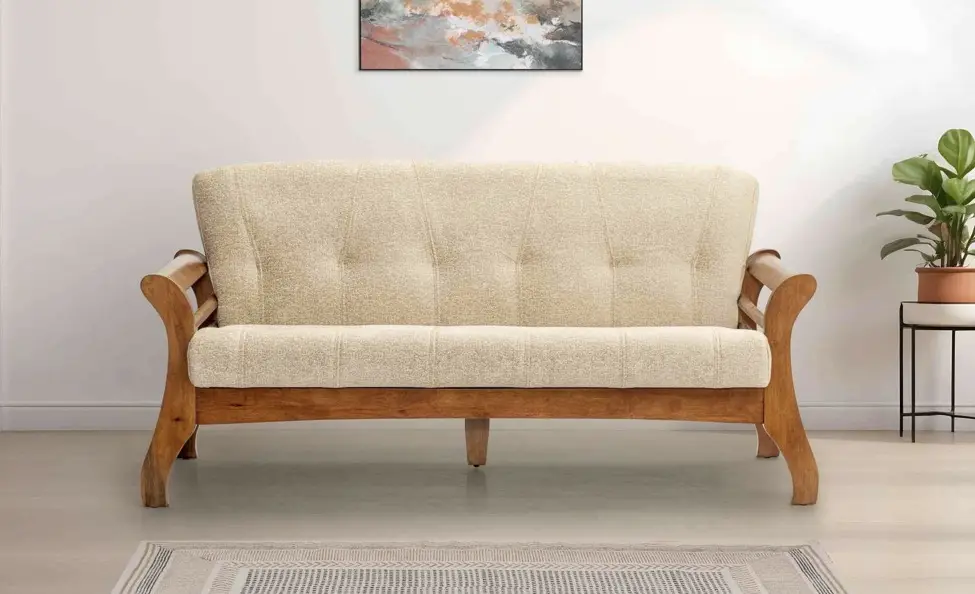 The Baywood 5-seater wooden sofa set fits all kinds of interiors with ease. It features a classy design with soft cushioning for maximum seating comfort. The curved wooden hand rests and cushioned back provide excellent arm and back support so you can sit