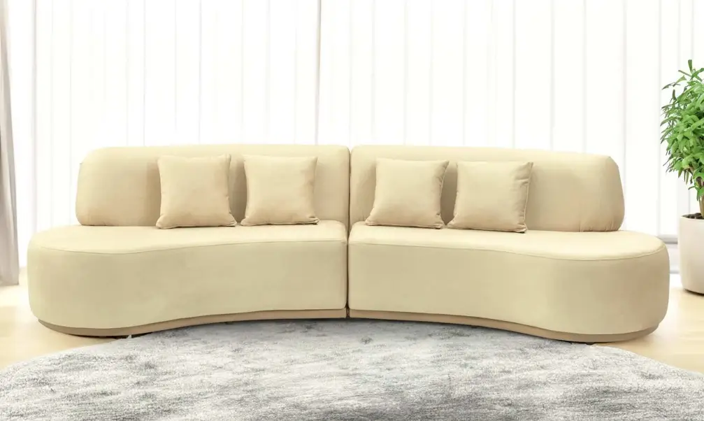Introducing our Ellan Sofa Set, a curated ensemble that redefines comfort and style for your living space. Crafted with care, this set features a two-piece curved sectional sofa, two accent chairs, and a two-seater curved sofa.